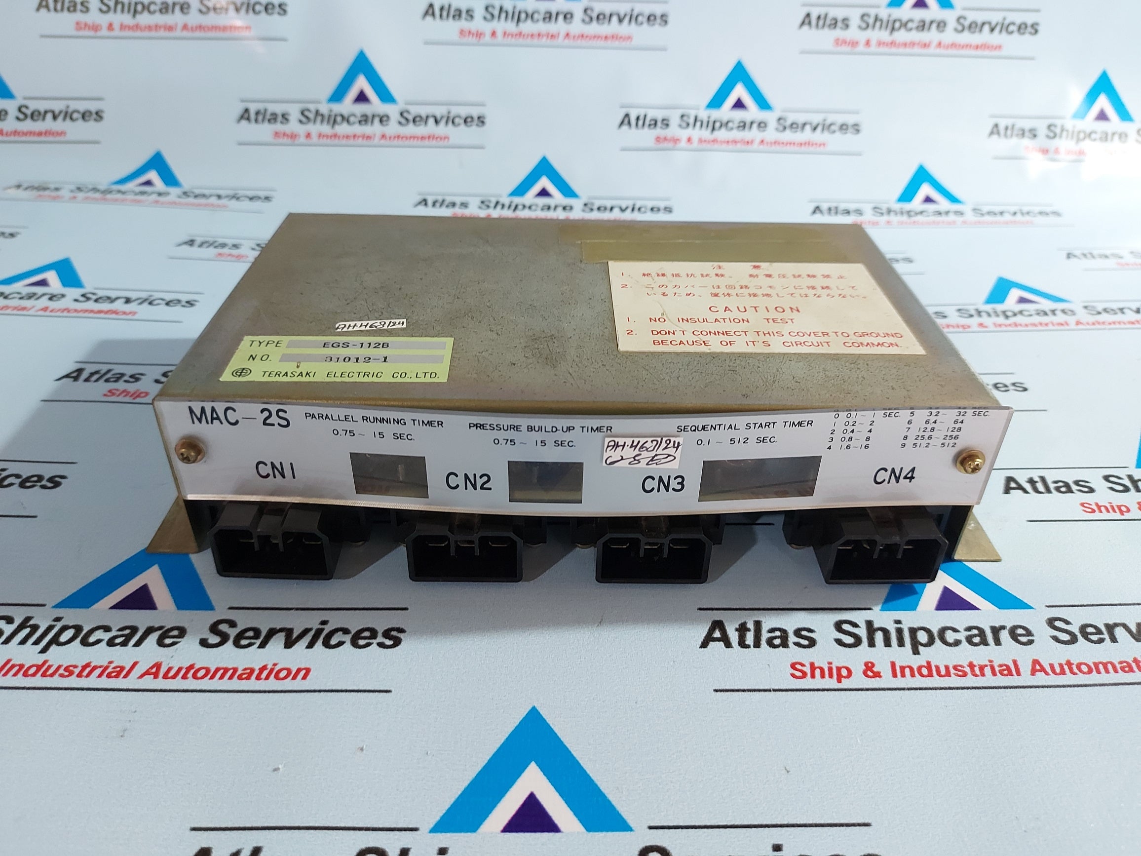 Regular price Rs. 0.00Sale price Rs. 0.00 Regular priceUnit price perSale Sold outTERASAKI MAC-2S MOTOR AUTOMATIC CONTROLLER EGS-112B TERASAKI ELECTRIC CO.,LTD. MAC-2S MOTOR AUTOMATIC CONTROLLER TYPE : EGS-112B NO.: 31012-1 PARALLEL RUNNING TIMER : 0.75 ~ 15 Sec...