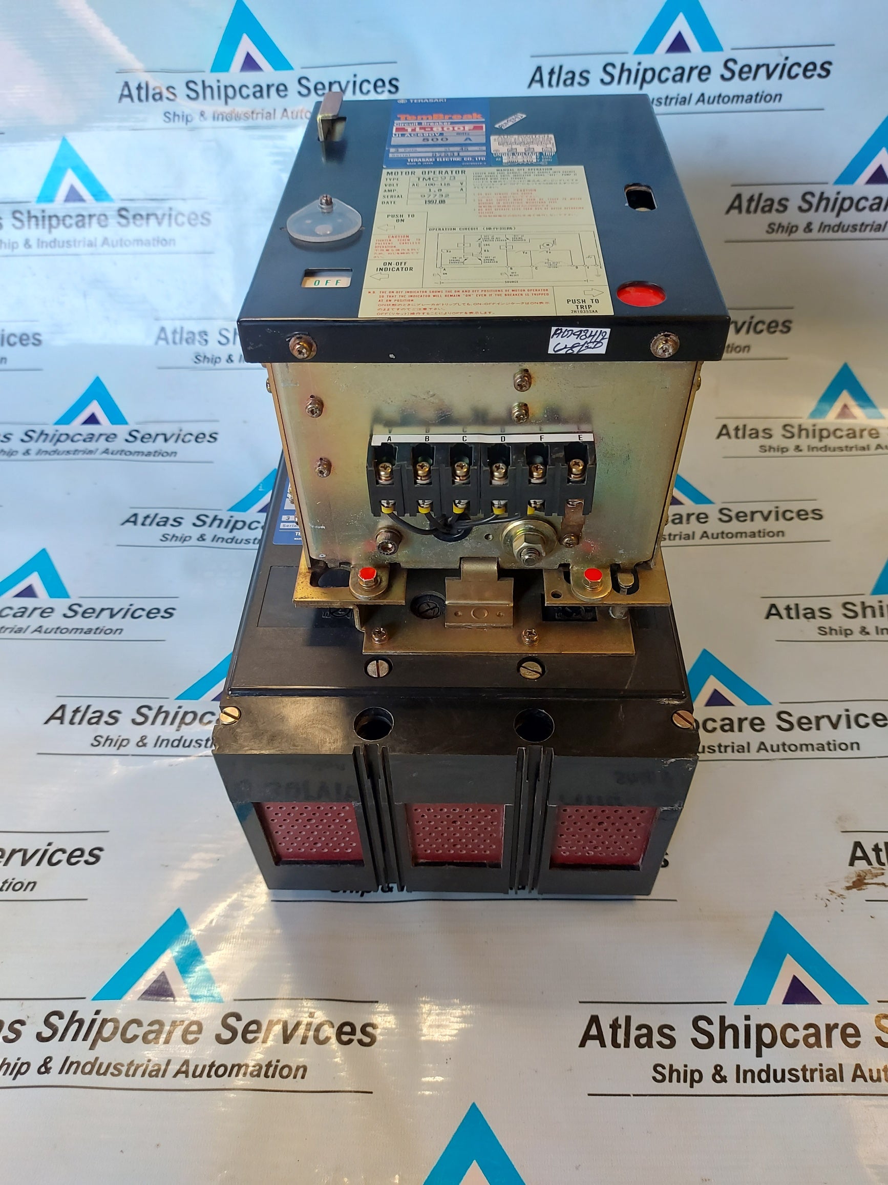Regular price Rs. 0.00Sale price Rs. 0.00 Regular priceUnit price perRs. 0.00Sale Sold outTERASAKI TEMBREAK XS1200NE CIRCUIT BREAKER TERASAKI ELECTRIC CO.,LTD. TEMBREAK XS1200NE CIRCUIT BREAKER Ui : AC690V 50~60Hz 400-450-500 600-700-800A 3 POLE SERIAL.NO : 98545P MOTOR OPERATOR TYPE...