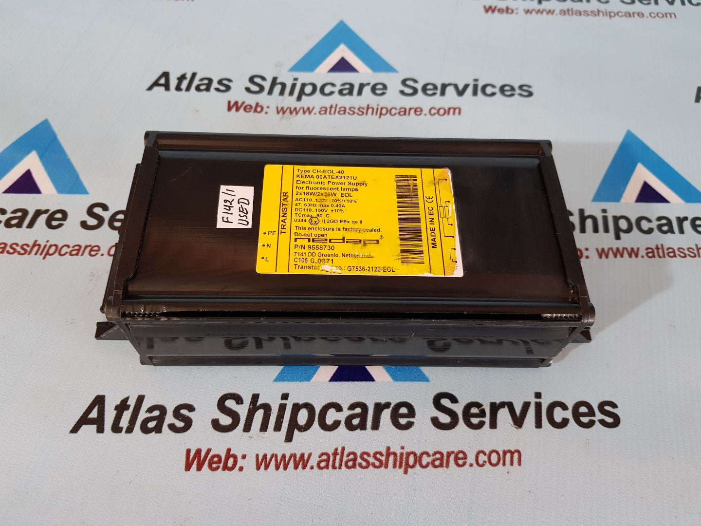 Regular price Rs. 0.00Sale price Rs. 0.00 Regular priceUnit price perSale Sold outTranstar CH-EOL-40 Electronic Power Supply Transtar Type : CH-EOL-40 Electronic Power Supply 2x18W/2x36W EOL 110...130Vac -10%/+10% 47...63Hz Max 0.40A 110...150Vdc +-10% TCmax : 90'C P/N :...
