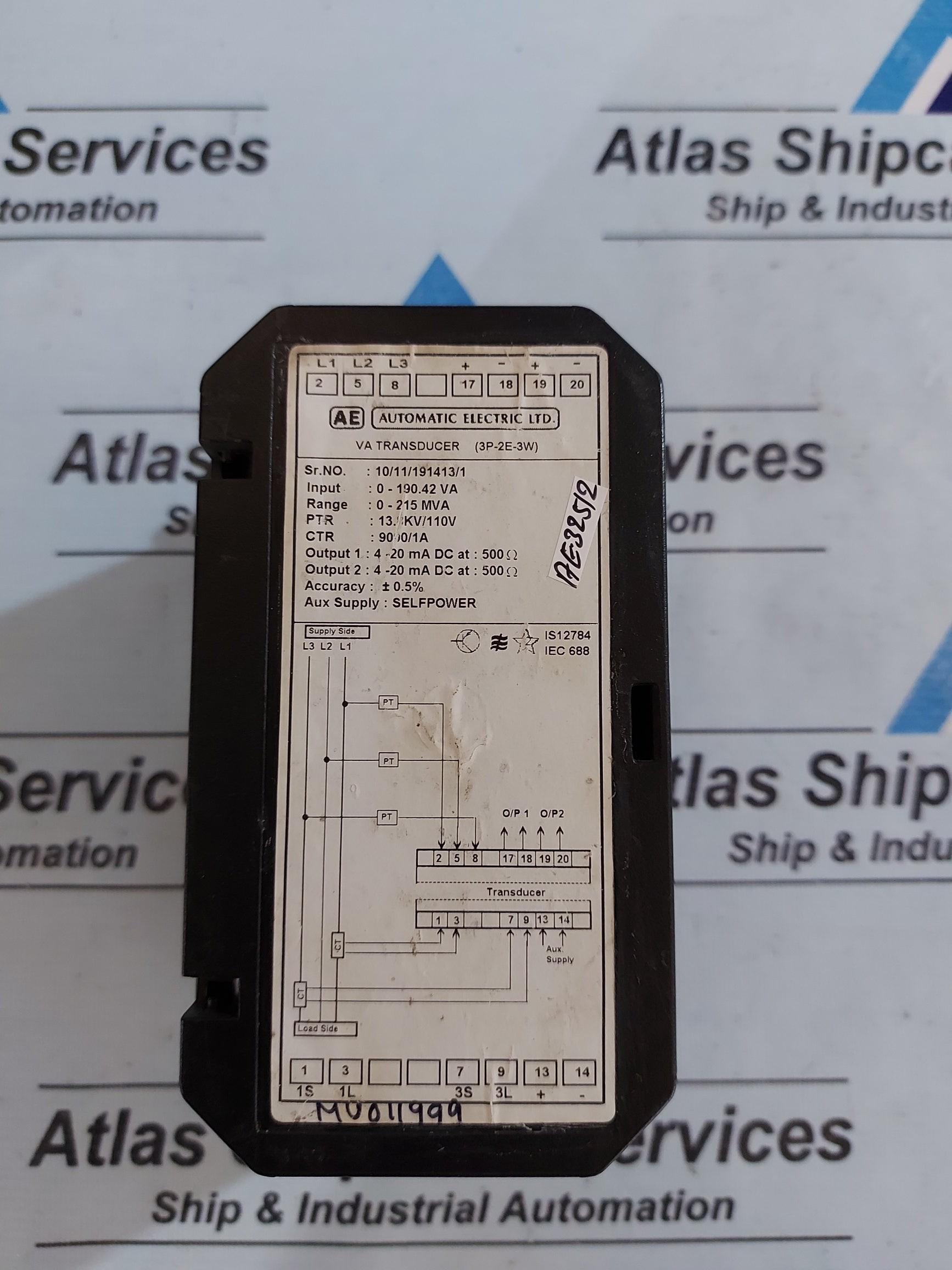 Regular price Rs. 0.00Sale price Rs. 0.00 Regular priceUnit price perRs. 0.00Sale Sold outAUTOMATIC ELECTRIC VA TRANSDUCER AUTOMATIC ELECTRIC LTD. VA TRANSDUCER (3P-2E-3W) SR.NO : 10/11/191413/1 INPUT : 0-190.42 VA RANGE : 0-215 MVA PTR : 13.8KV/110V CTR :...