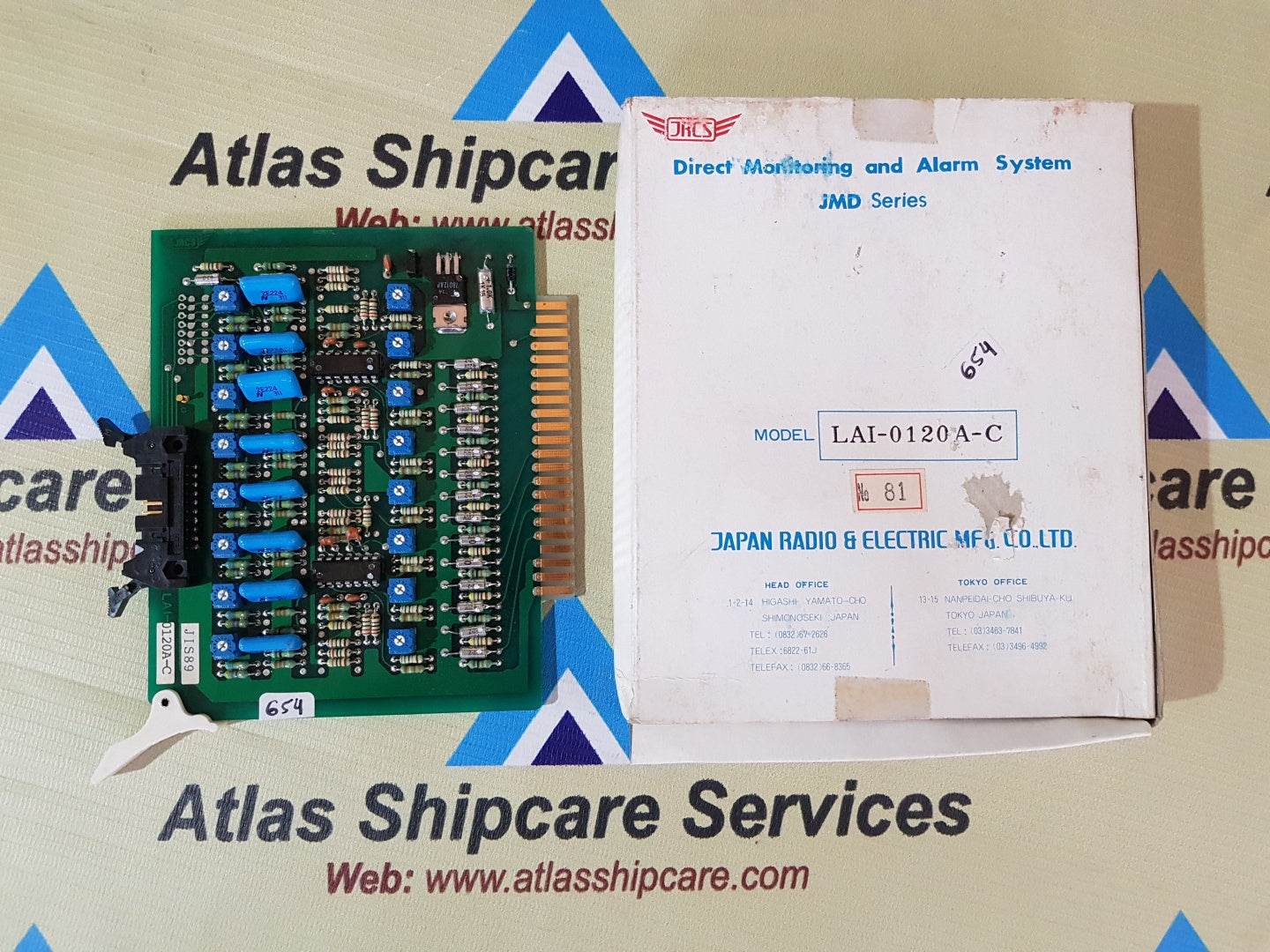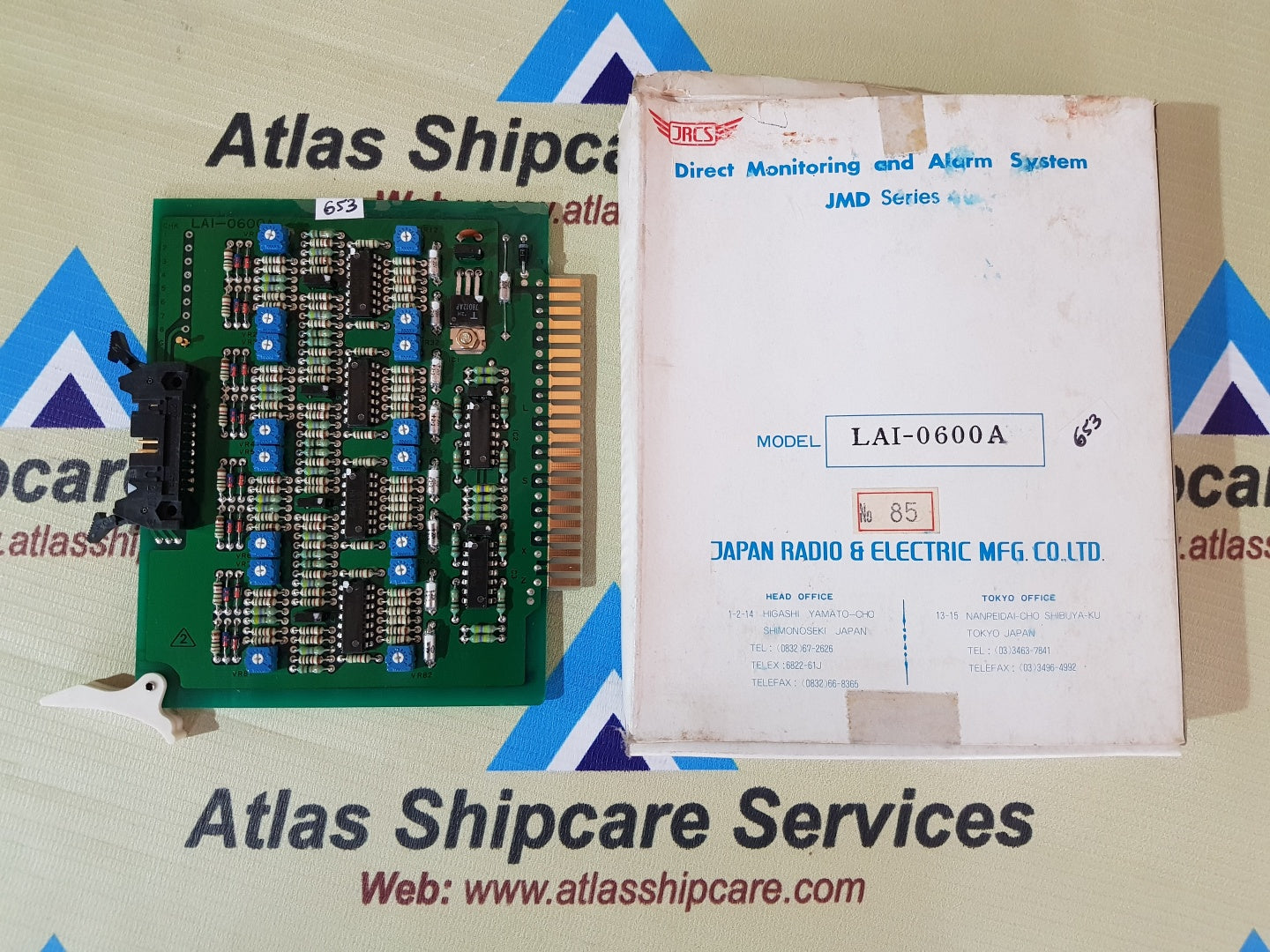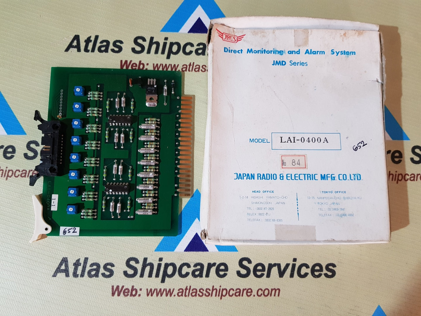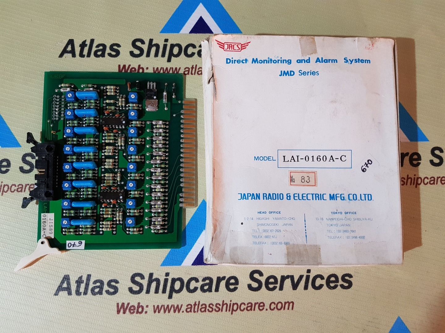 Regular price Rs. 0.00Sale price Rs. 0.00 Regular priceUnit price perSale Sold outJRCS LAI-0600A DIRECT MONITORING AND ALARM SYSTEM JRCS JAPAN RADIO & ELECRIC MFG.CO.LTD MODEL : LAI-0600A DIRECT MONITORING AND ALARM SYSTEM JMD SERIES NO : 85...