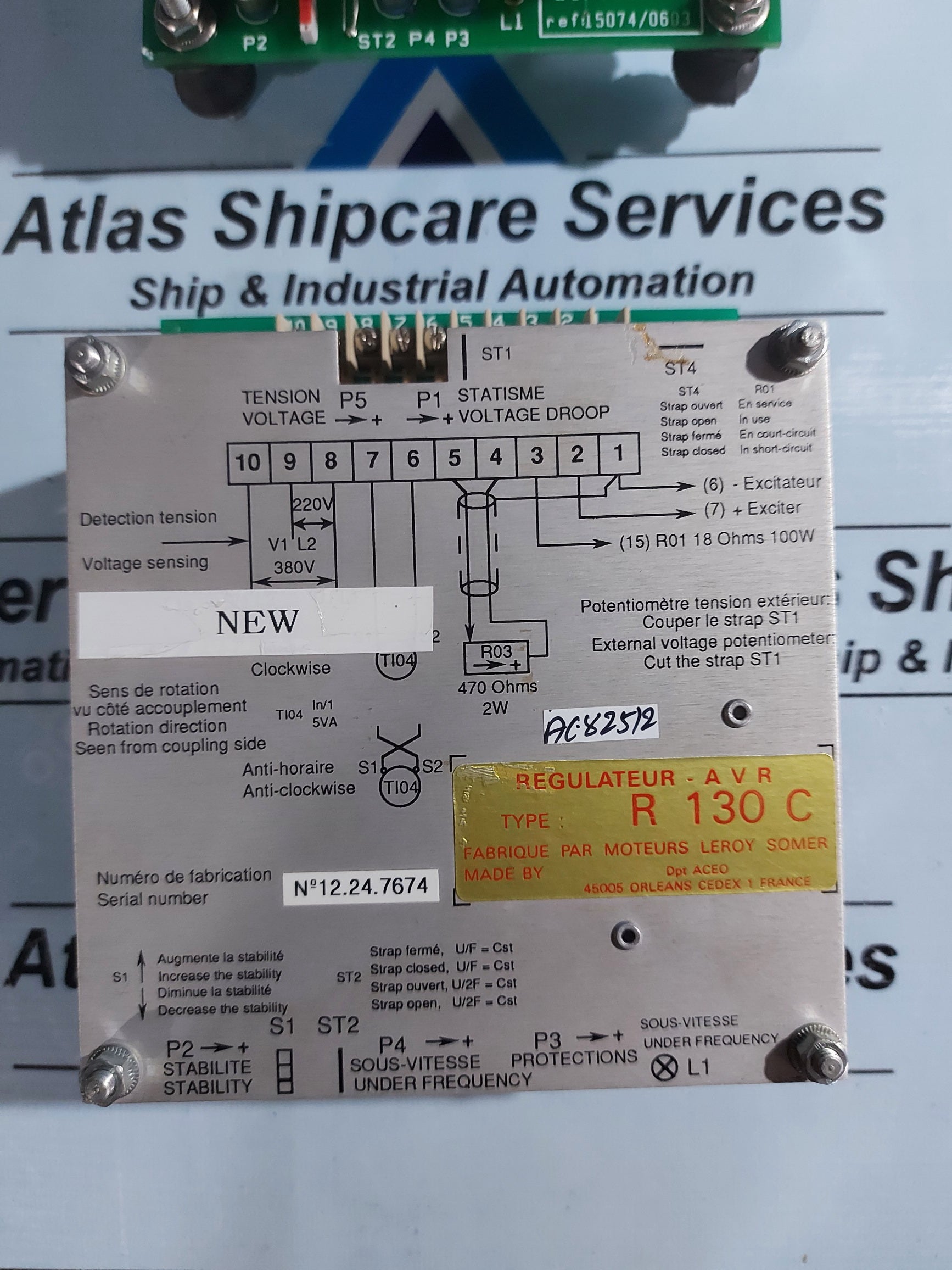 Regular price Rs. 0.00Sale price Rs. 0.00 Regular priceUnit price perSale Sold outLEROY SOMER R450AVR AUTOMATIC VOLTAGE REGULATOR LEROY SOMER R450AVR AUTOMATIC VOLTAGE REGULATOR 50Hz EXT FREQ 60Hz SETTING 380V 220V 110V 0V CONDITION : NEW 3 PCS...