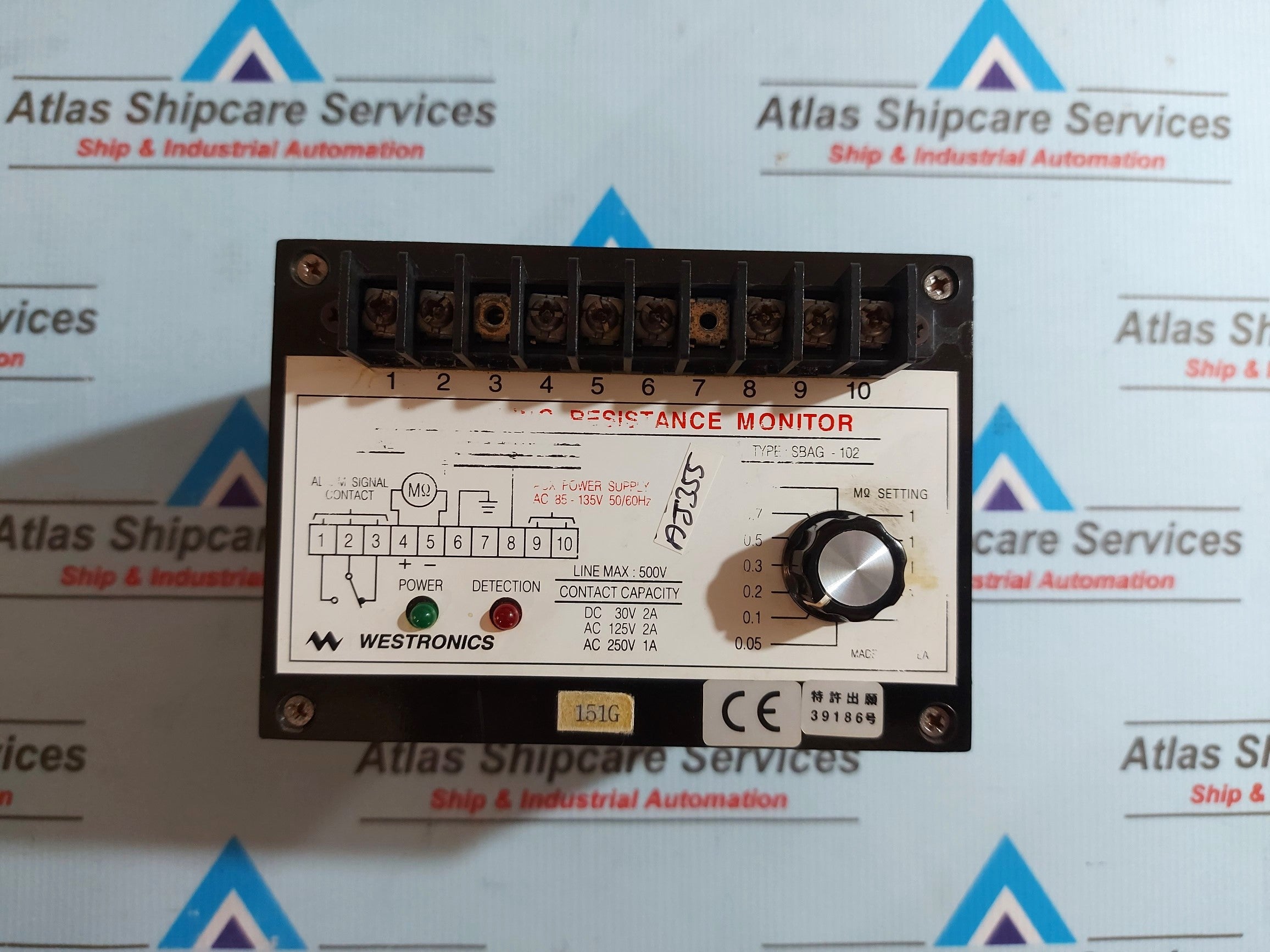 Regular price Rs. 0.00Sale price Rs. 0.00 Regular priceUnit price perSale Sold outWESTRONICS SBAG-102 GROUNDING RESISTANCE MONITOR 500V WESTRONICS TYPE : SBAG-102 GROUNDING RESISTANCE MONITOR LINE MAX.: 500V AUX.POWER SUPPLY : AC 85-135V 50/60Hz CONTACT CAPACITY : DC...