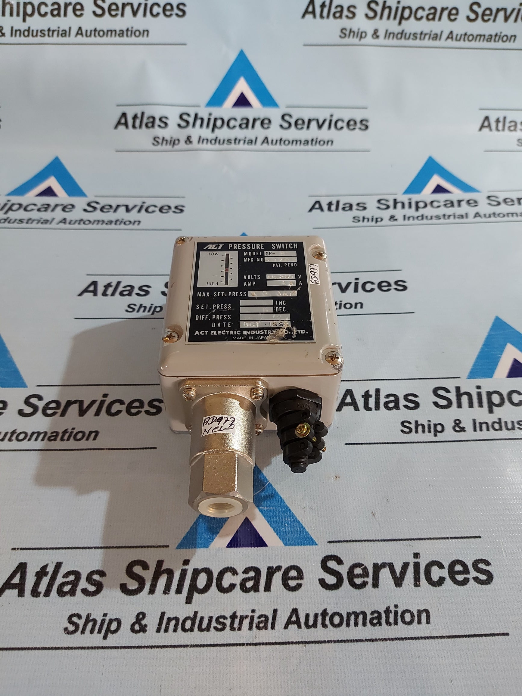 Regular price Rs. 0.00Sale price Rs. 0.00 Regular priceUnit price perRs. 0.00Sale Sold outACT PRESSURE SWITCH SP-R-250 ACT ELECTRIC INDUSTRY CO.,LTD. MODEL : SP-R-250 PRESSURE SWITCH MFG.NO : 53782 VOLTS : AC.250V AMP.: 15A MAX.SET,PRESS : 30 BAR DATE...
