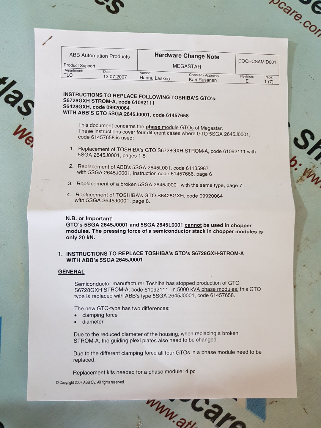 ABB 5SGA 2465J0001 THYRISTOR