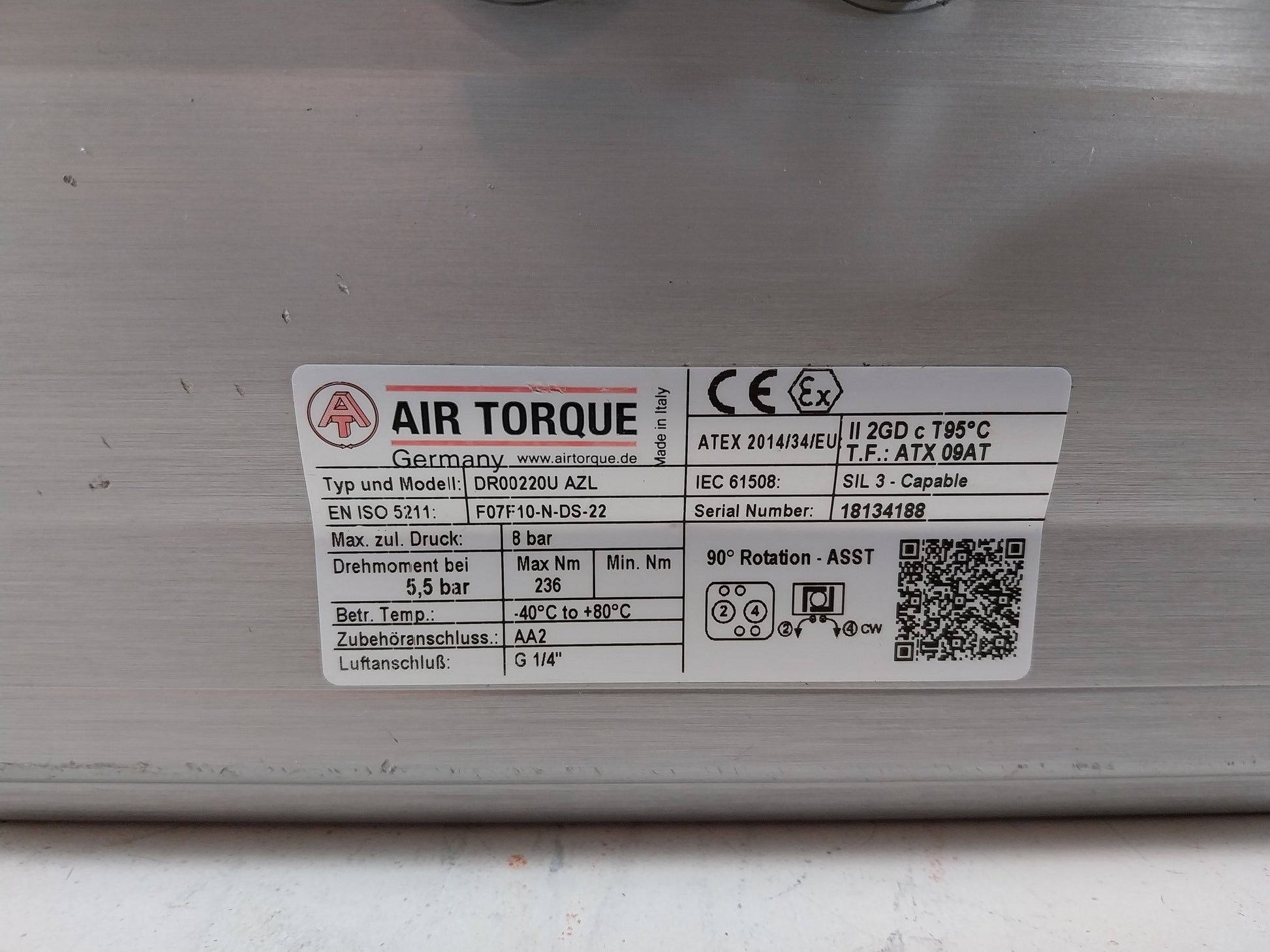 AIR TORQUE DR00220U AZL PNEUMATIC ACTUATOR