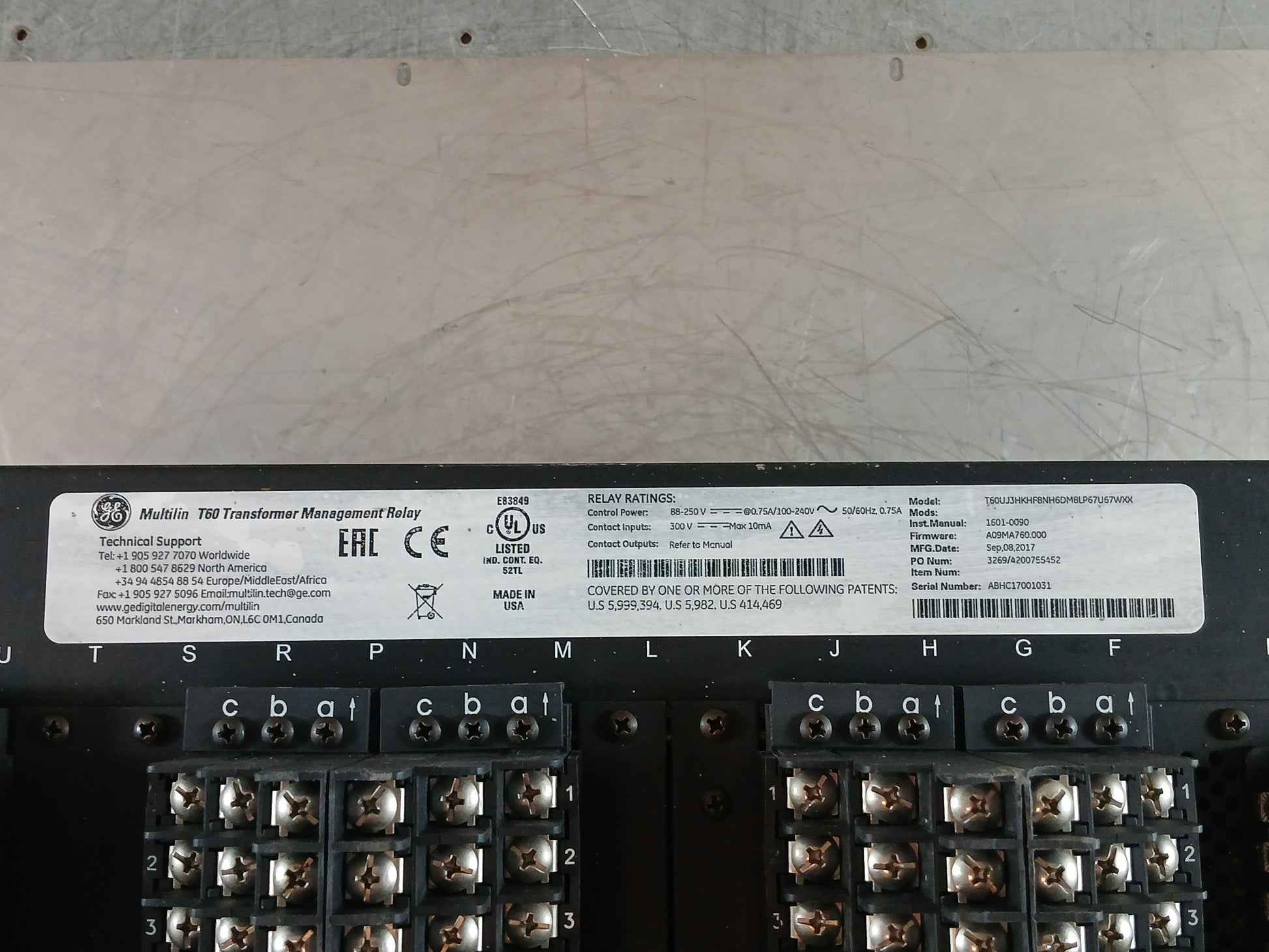GE T60UJ3HKHF8NH6DM8LP67U67WXX MULTILIN T60 TRANSFORMER MANAGEMENT RELAY