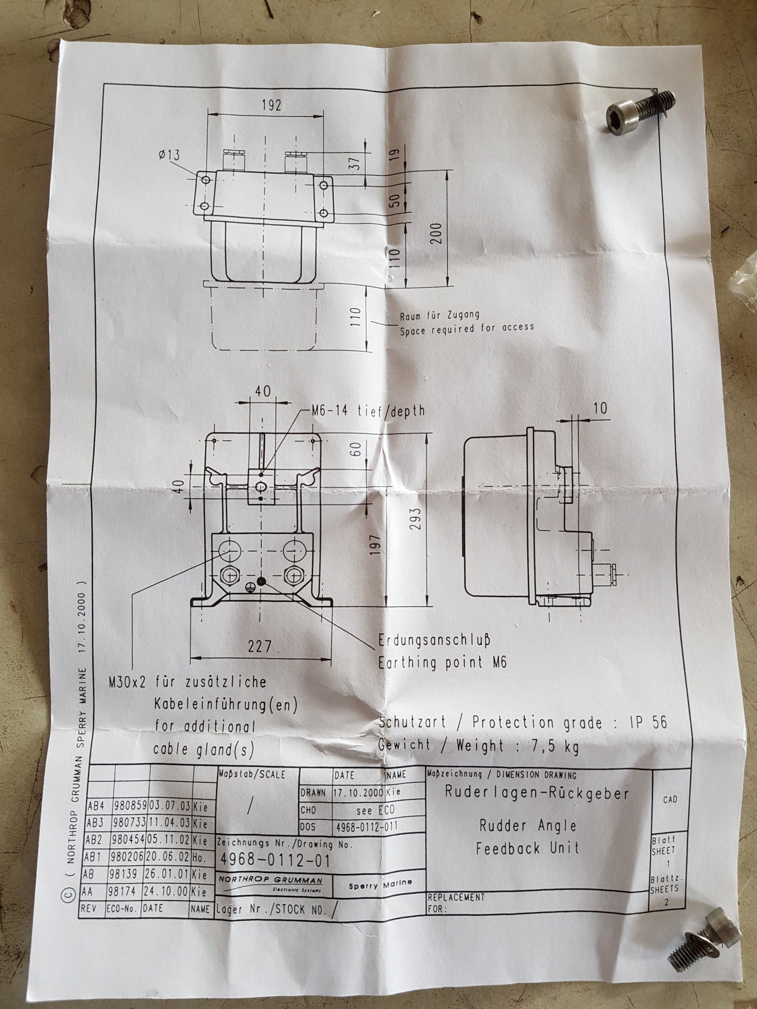 NORTHROP GRUMMAN 4968-BB RUDDER INDICATOR GEARBOX