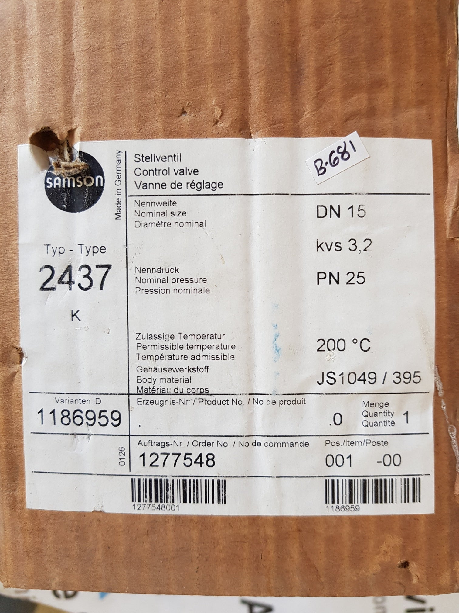 SAMSON STELLVENTIL CONTROL VALVE 2437K