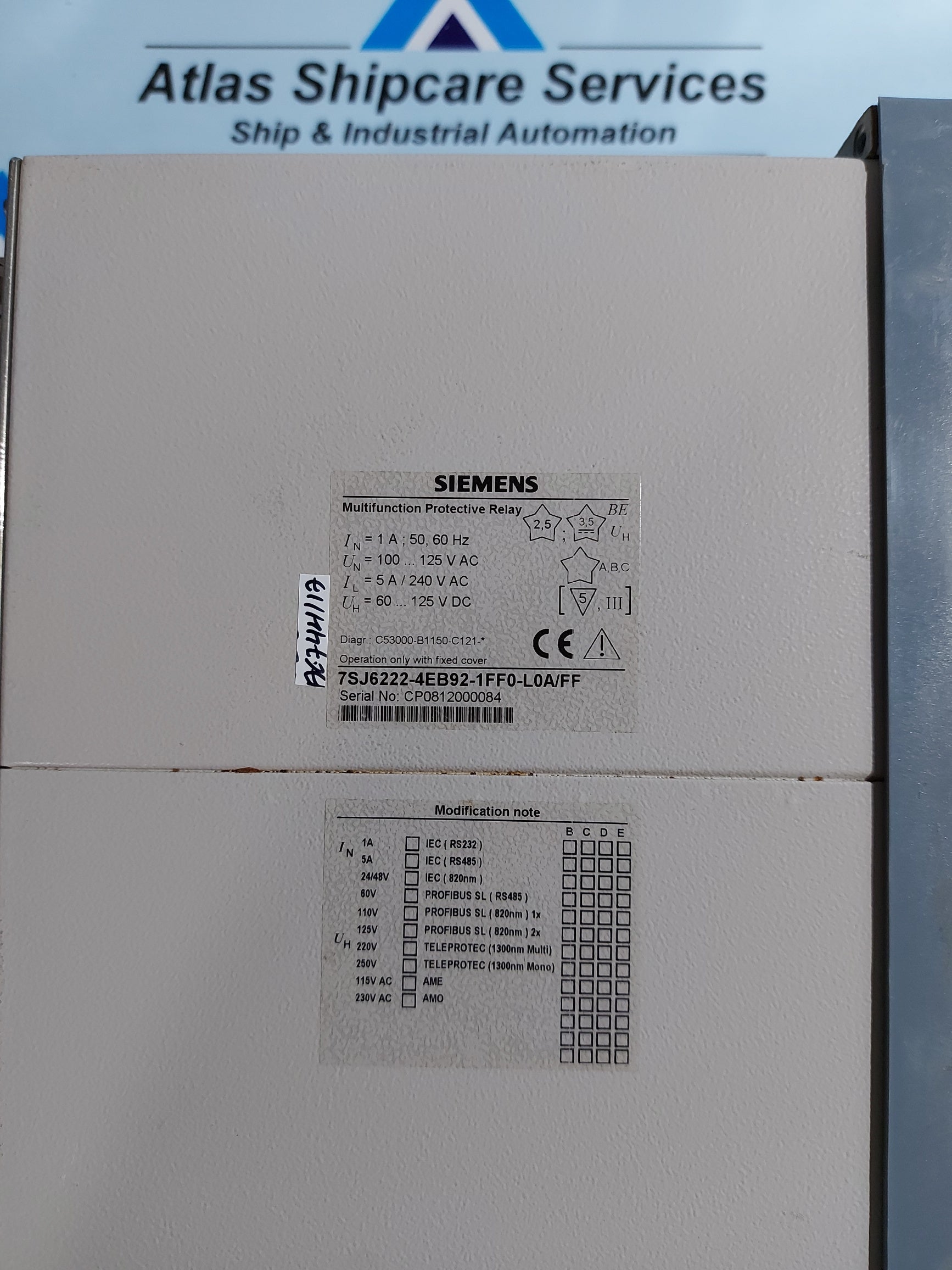 SIEMENS SIPROTEC 7SJ62 MULTIFUNCTION PROTECTIVE RELAY 7SJ6222-4EB92-1FF0-L0A/FF