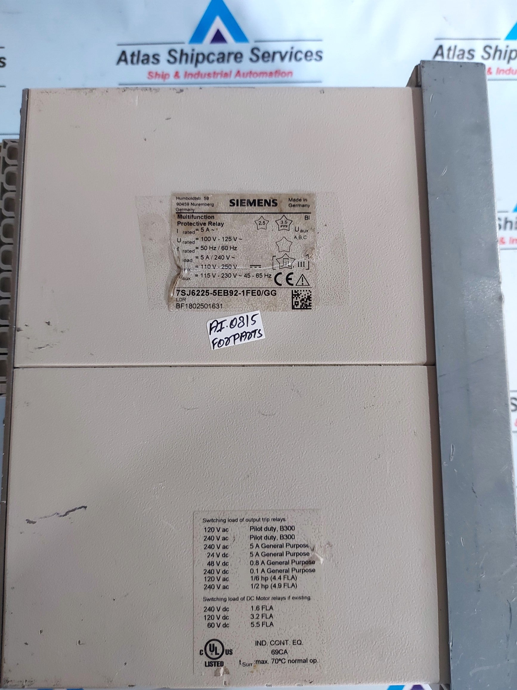 SIEMENS SIPROTEC 7SJ6225-5EB92-1FE0/GG MULTIFUNCTION PROTECTION RELAY