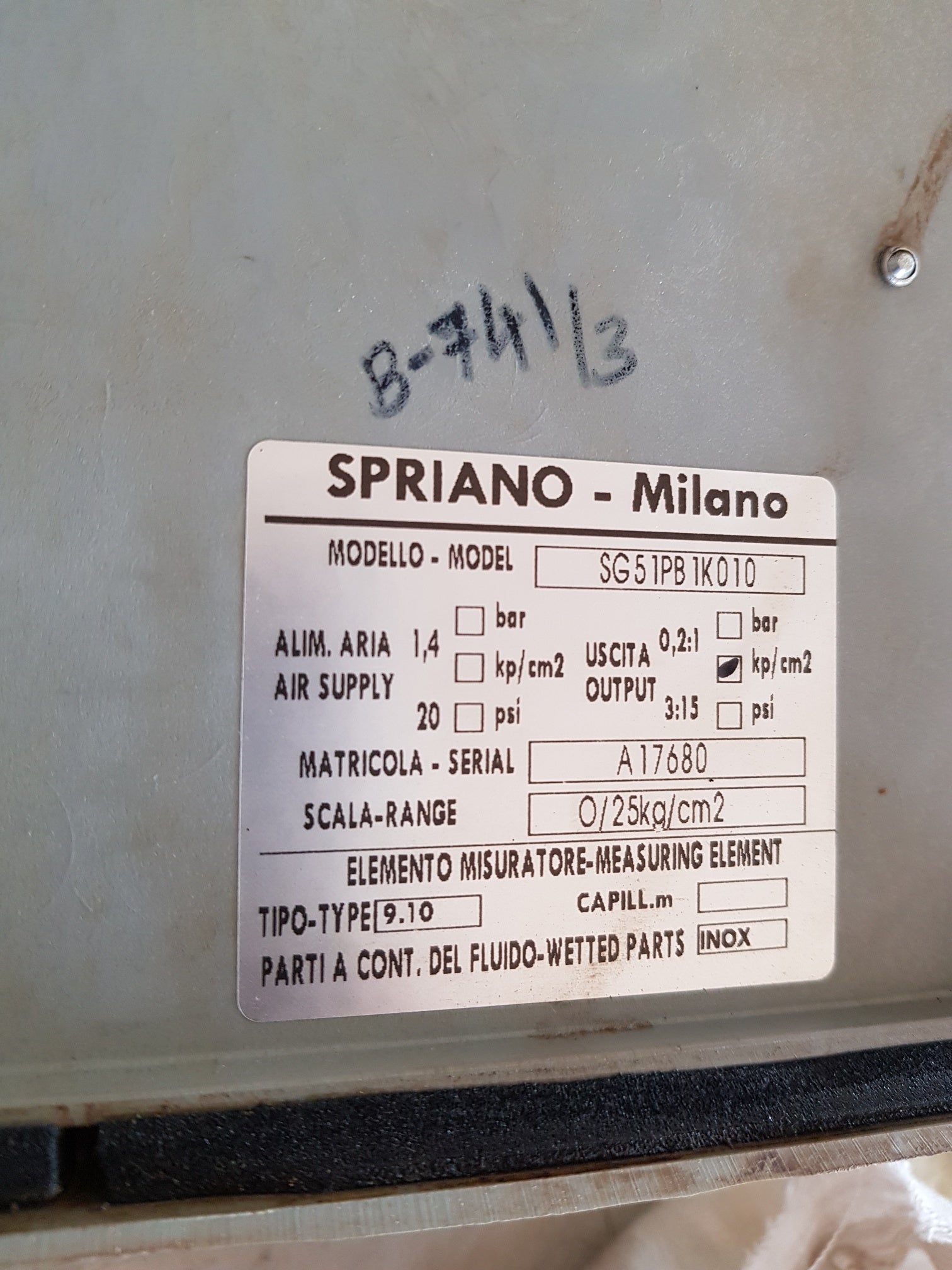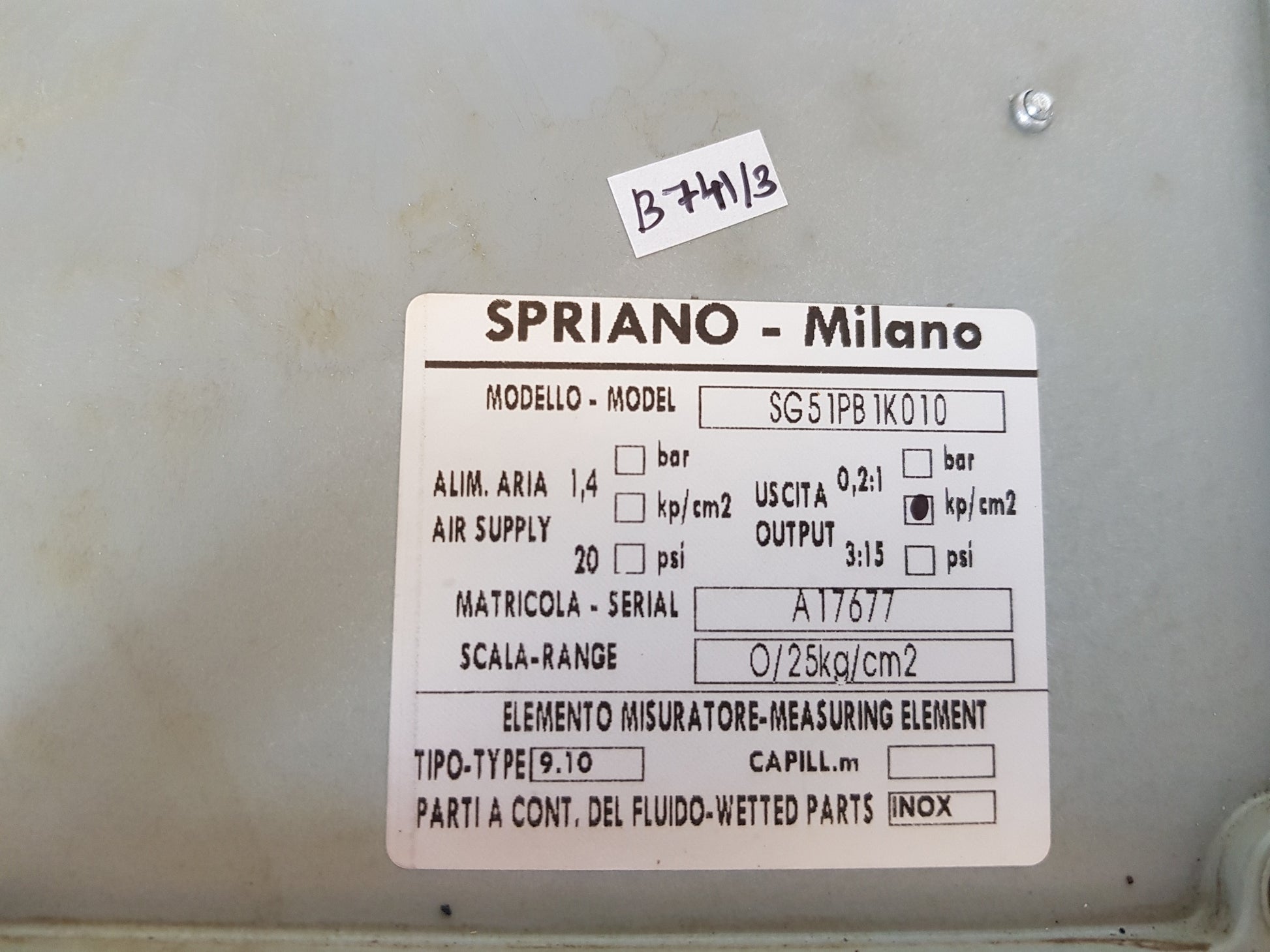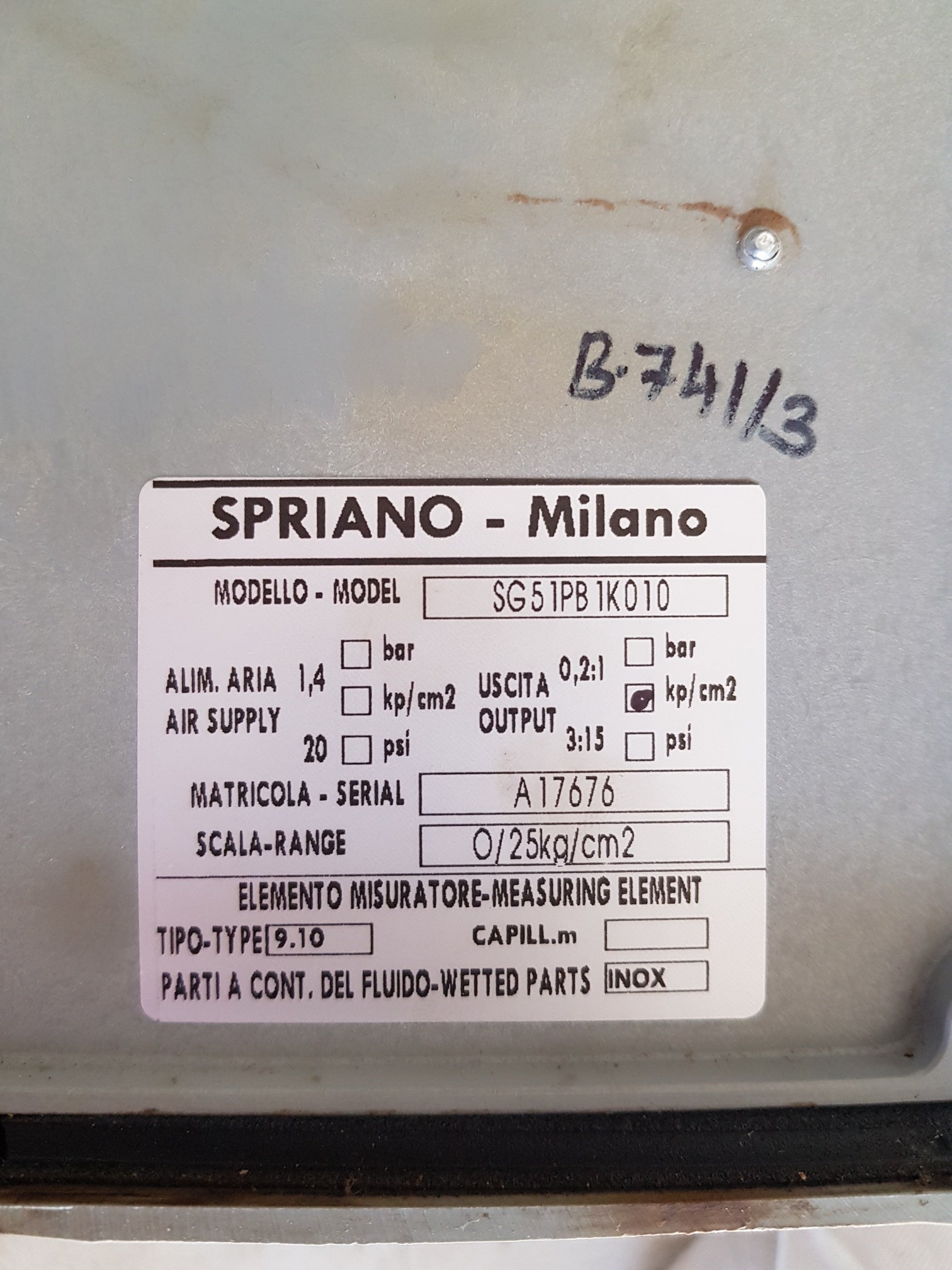 SCALE RANGE : 0/25KG/CM2