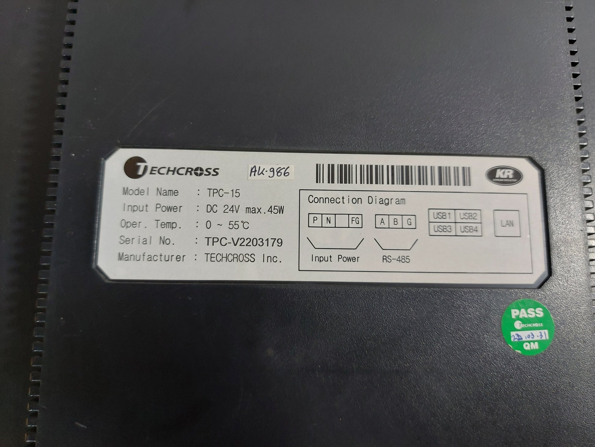 TECHCROSS TPC-15 BALLAST WATER MANAGEMENT SYSTEM DISPLAY