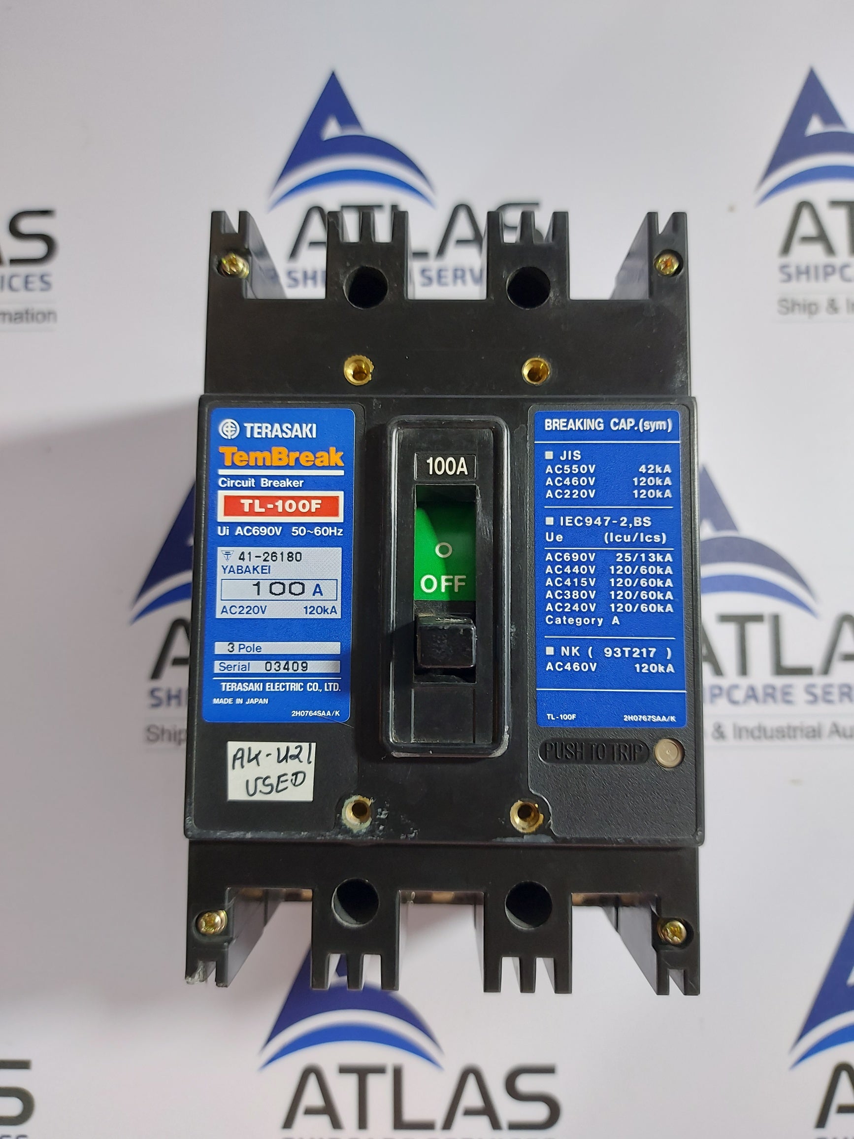 TERASAKI TL-100F TEMBREAK MOLDED CASE CIRCUIT BREAKER 3 POLE 100A